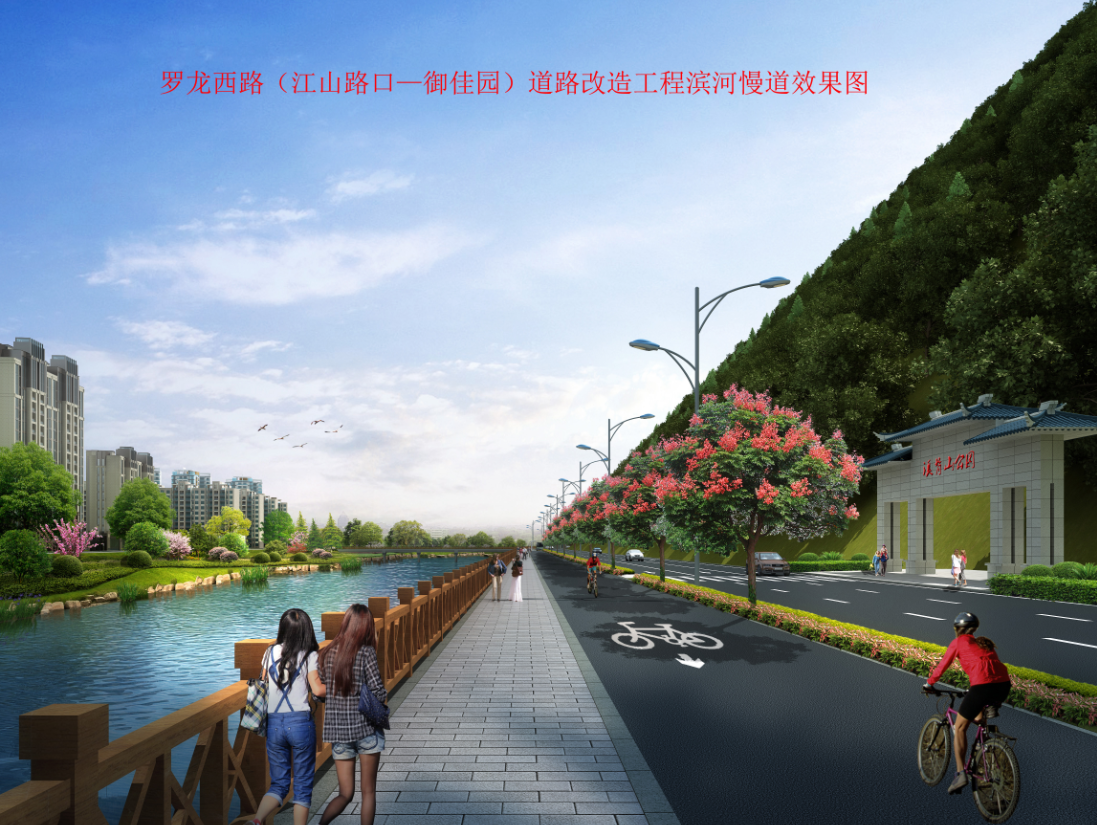羅龍西路是連接龍巖西高速出入口與中心城市的唯一通道,其規(guī)劃改造范圍從紅竹山橋至御佳園路口,全長3855米,計劃將原道路拓寬至40米,實行雙向六車道,兩旁設(shè)2.5米非機(jī)動車道,并在湖二橋路口以東設(shè)640米入城單向三車道隧道連接至御佳園路口,原羅龍西路湖二橋至御佳園段將調(diào)整為出城單向車道。