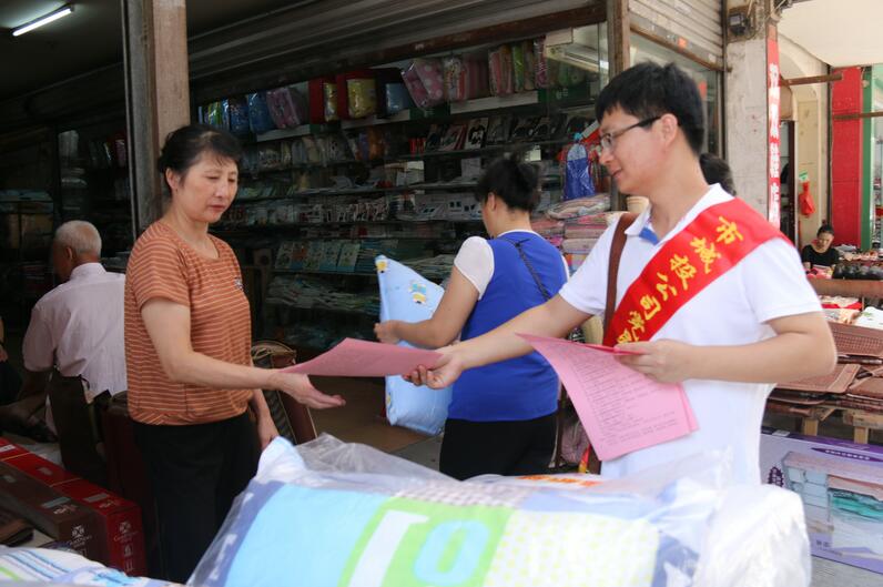 志愿者向居民和商業(yè)店鋪發(fā)放宣傳資料《創(chuàng)建全國文明城市倡議書》《創(chuàng)建全國文明城市應知應會知識》《創(chuàng)建全國文明城市知識問卷》,向居民和商業(yè)店鋪講解了“創(chuàng)城”的意義,并與執(zhí)法大隊人員一起對沿街不規(guī)范的店鋪進行整改。