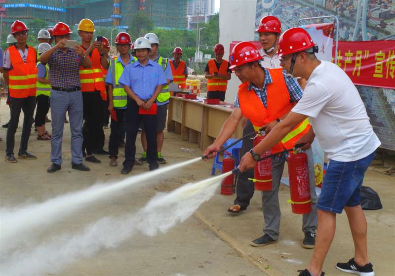 6月16日是“全國安全生產(chǎn)宣傳咨詢?nèi)铡?。?dāng)日,龍巖城發(fā)集團(tuán)與市城投公司組織人員分別前往中心城區(qū)華蓮西路一期、火車站站前高架橋、龍巖大橋高架橋、龍巖大道四期下穿工業(yè)路通道等四個(gè)項(xiàng)目工地,開展安全生產(chǎn)宣傳活動。圖為工作人員現(xiàn)場指導(dǎo)工人使用滅火器。