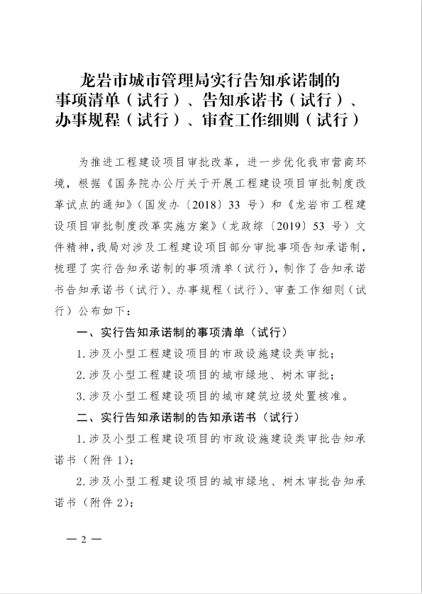 龍巖市城市管理局關(guān)于印發(fā)工程建設項目審批制度改革有關(guān)政策的通知(龍城[2019]91號)